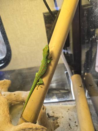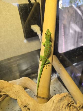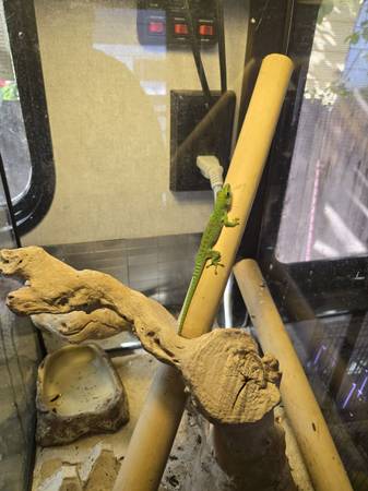 Young Madagascar day gecko with full setup $120 rehoming fee for everything
