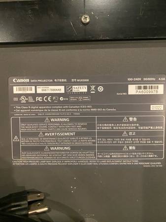 Professional Canon WUX5000 projector in excellent condition. Comes with power cord and mounting brackets.