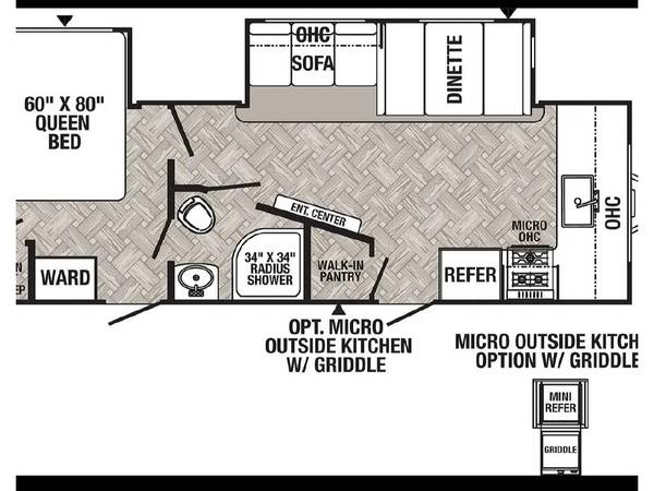 26 ft floorplan with 29ft exterior length makes it easily accessible into most campsites