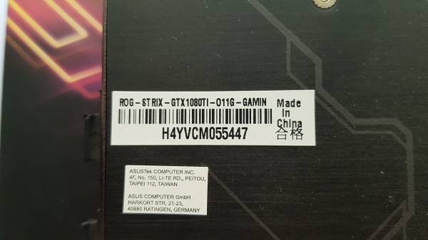 Asus ROG Strix GTX1080TI OC Graphics Card ROG-STRIX-GTX1080TI-O11G-GAMING USED