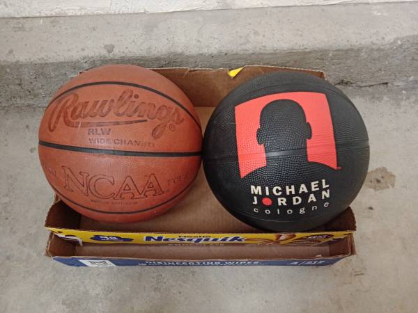 Rawlings RLW Final Four Basketball and Vintage Wilson Michael Jordan Cologne Basketball Black And Red. Both in good condition. If you are interested please text me at