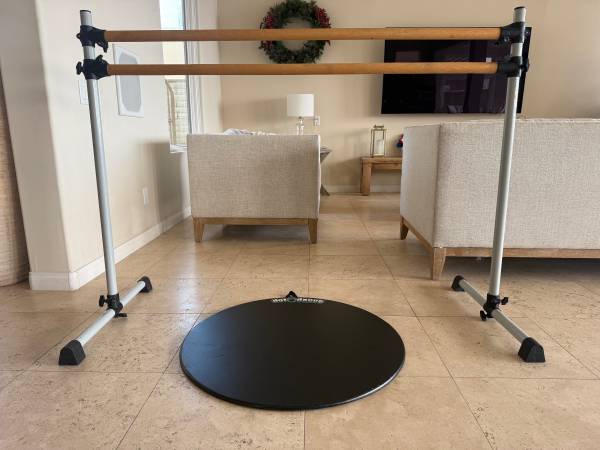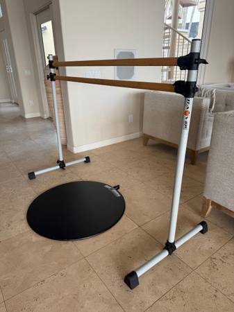 ****Great condition VITA Barre Portable Freestanding 5ft Double Ballet barre. Great for barre class or for your child who loves to dance. Included is a 32" Dot 2 Dance Marley Portable Dance Floor for practicing turns, pointe, and Tap. (Retail price $200!!!)