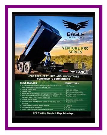 New 7 x 14 x 42" Venture Pro Dump Trailer 14K w/ 36”+6" Treated Board 42" Total Sides $10,275
