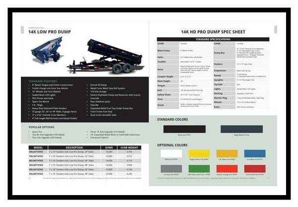 7 x 14 Low Pro Dump Trailer 14K, 48” Sides (RDL48714TA5) $11,450
