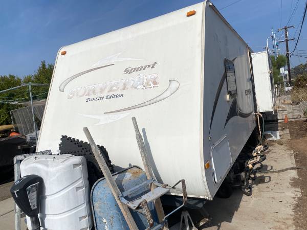 THE trailor was burnt from the inside however the shell outside is great. the fire started on the inside small living room and ran through the top burning the wiring. any one would like to buy it to fix up the tires are good and it's towable. if interested- please call Jose show contact info