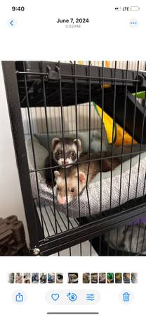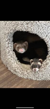 2 incredible sweet baby ferrets for sale!! They are 1000 for both! They have to go together and it comes with food and there cage, tunnels all there toys are there leashes!