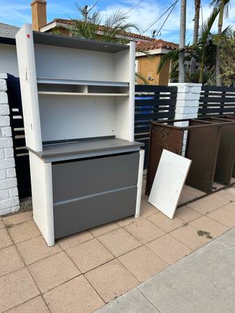 File cabinet, exercise equipment, gym equipment, and much more! Please take them all. I keep adding. Lots of arts and crafts. I am moving, and can not take them.