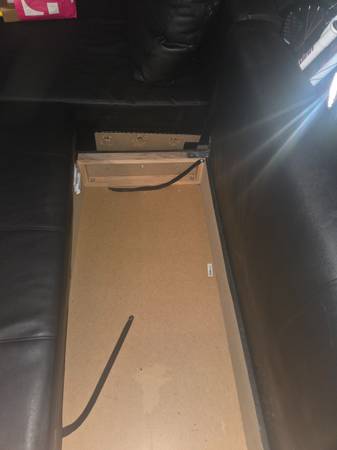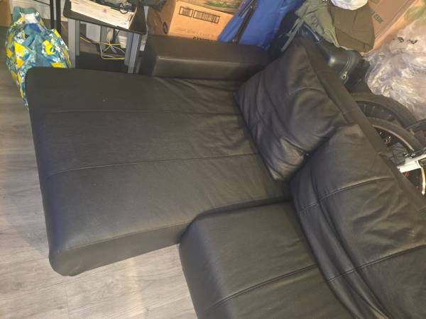 ****MOVING OUT SOON**** Free black synthetic leather couch Couch can open up as a bed. The pillows and material are in good condition. The section that opens up as a bed is broken. It can be fixable...